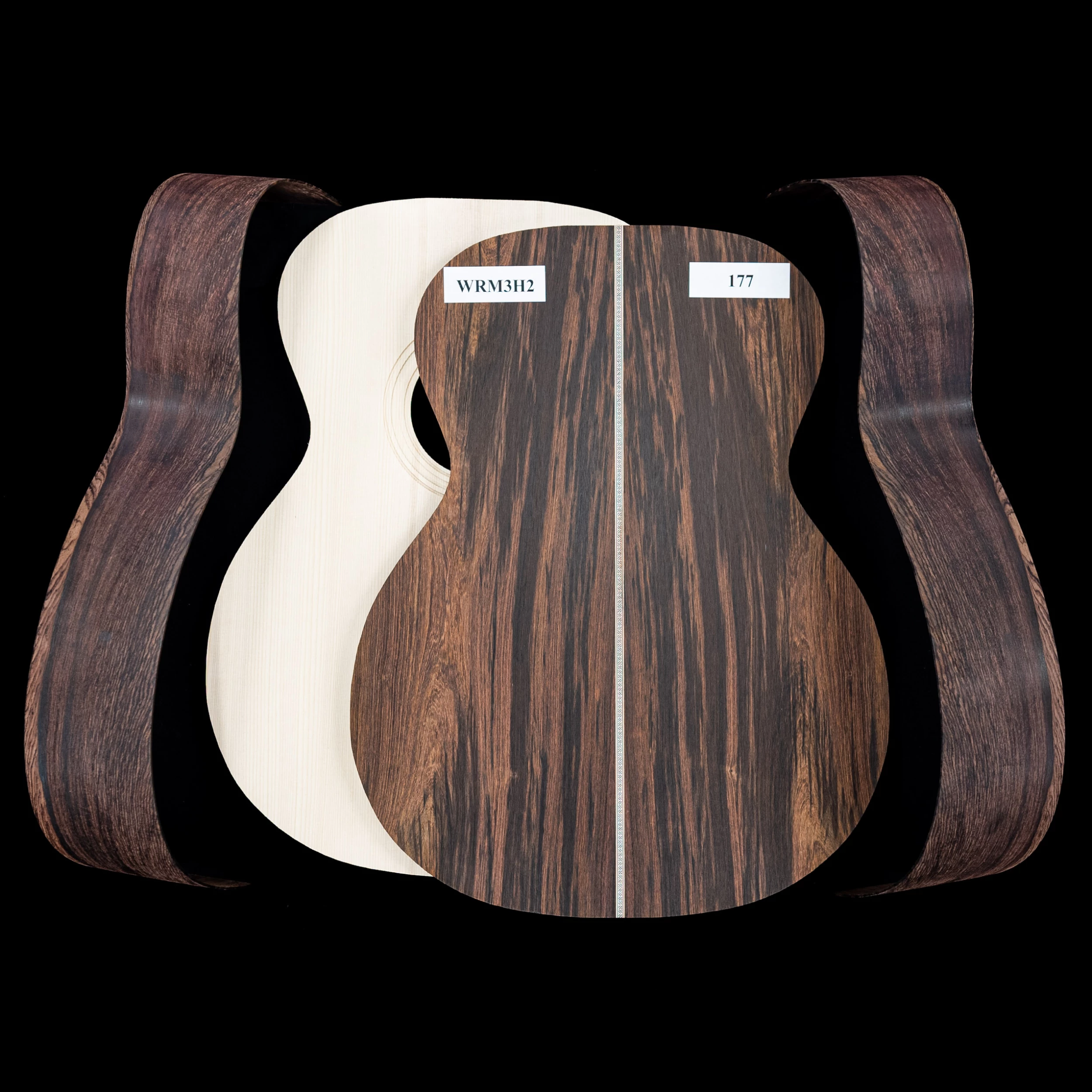 As you know, every piece of wood is unique, and has its own story to tell. When surveying these priceless guitars, we found some with elegant interlocking grain lines, and some that were wild and dynamic. For this reason we’ve photographed each of these kits individually—what you see pictured in the first image is the actual wood you’ll receive. And as a builder, we know you want to choose the wood that speaks to you.