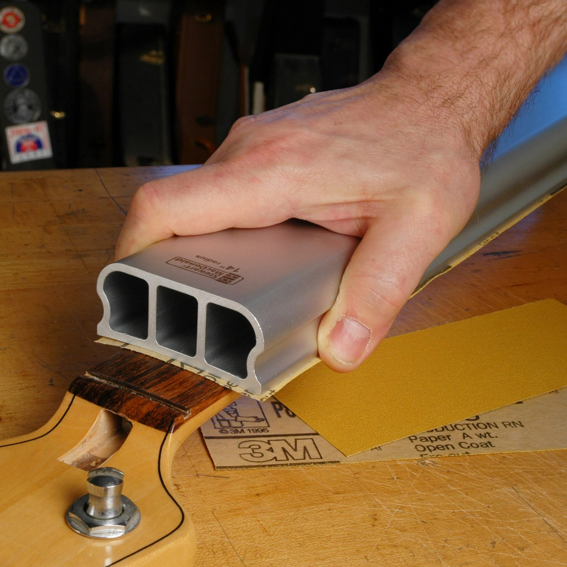 Custom made for us! Our 1″ wide 3M Stikit Gold Abrasives are cut to the exact width of our Fret/Fingerboard Levelers. No more wasted sandpaper!