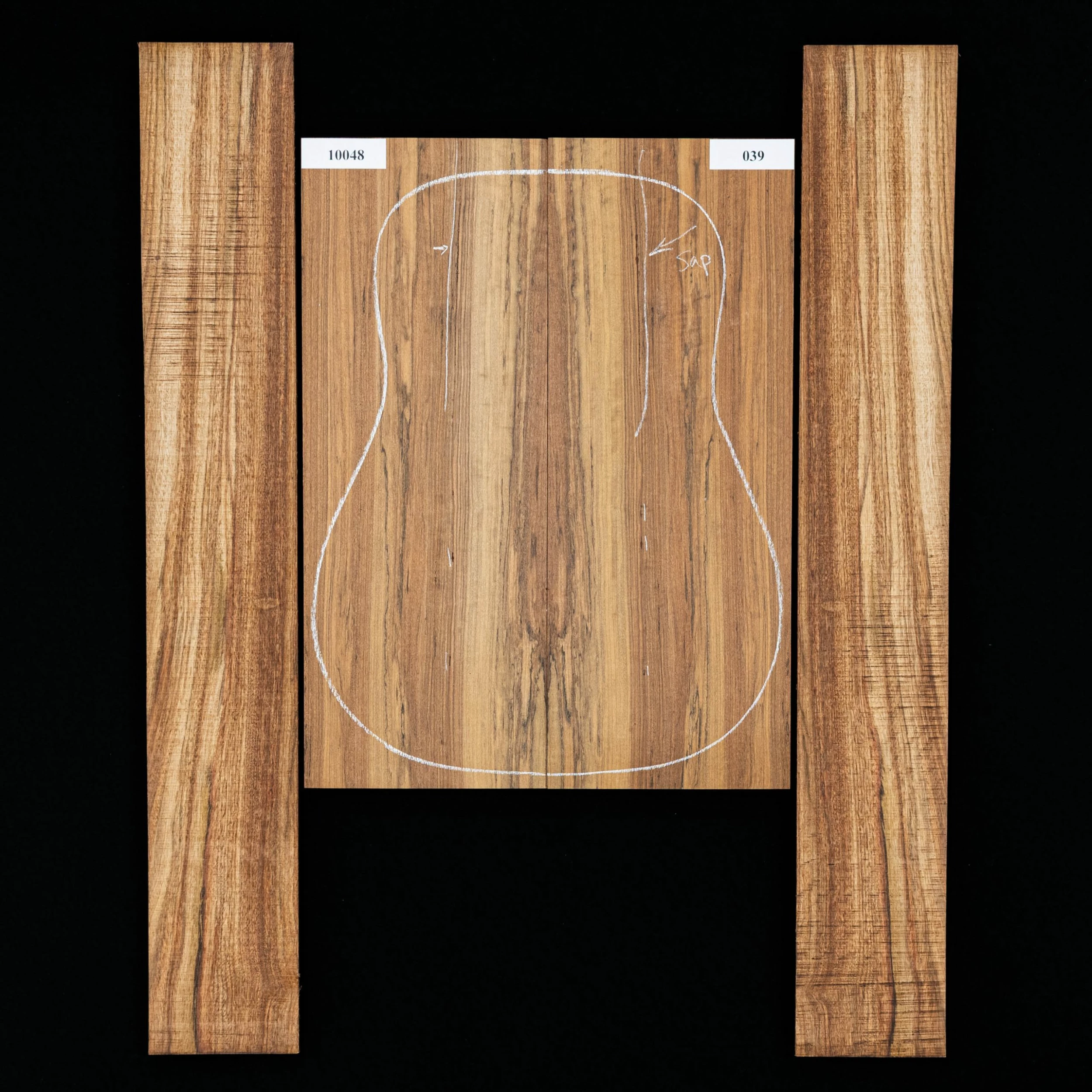 Each bookmatched back and side sets are ready for you to start your build. When joined, they are large enough for a dreadnought. Sides are unprofiled (rectangular) and unbent. Kiln-dried.