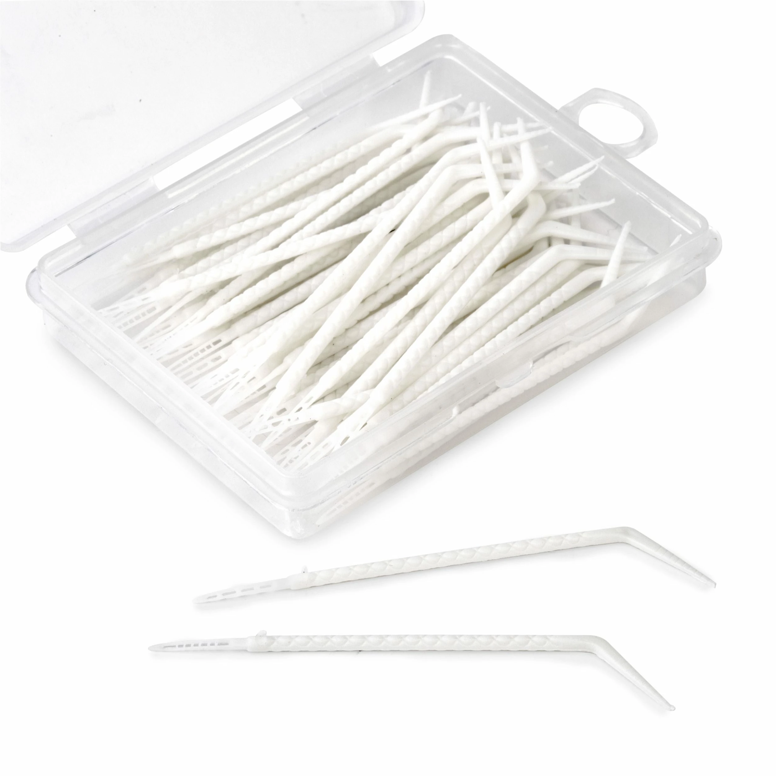Handy angled plastic sticks flow drops of glue and lacquer precisely.