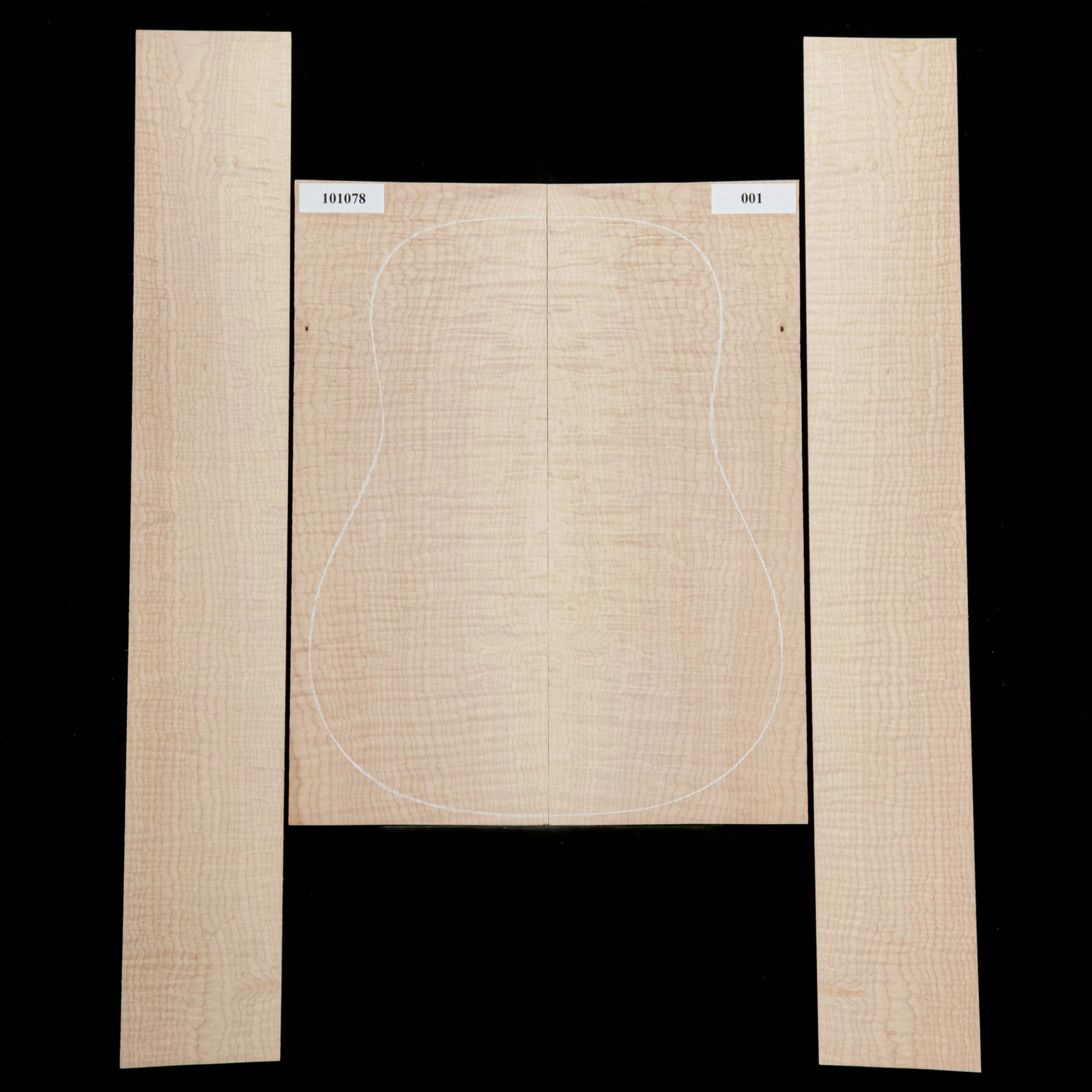 Each bookmatched back and side sets are ready for you to start your build. When joined, they are large enough for a dreadnought. Sides are unprofiled (rectangular) and unbent. Kiln-dried.
