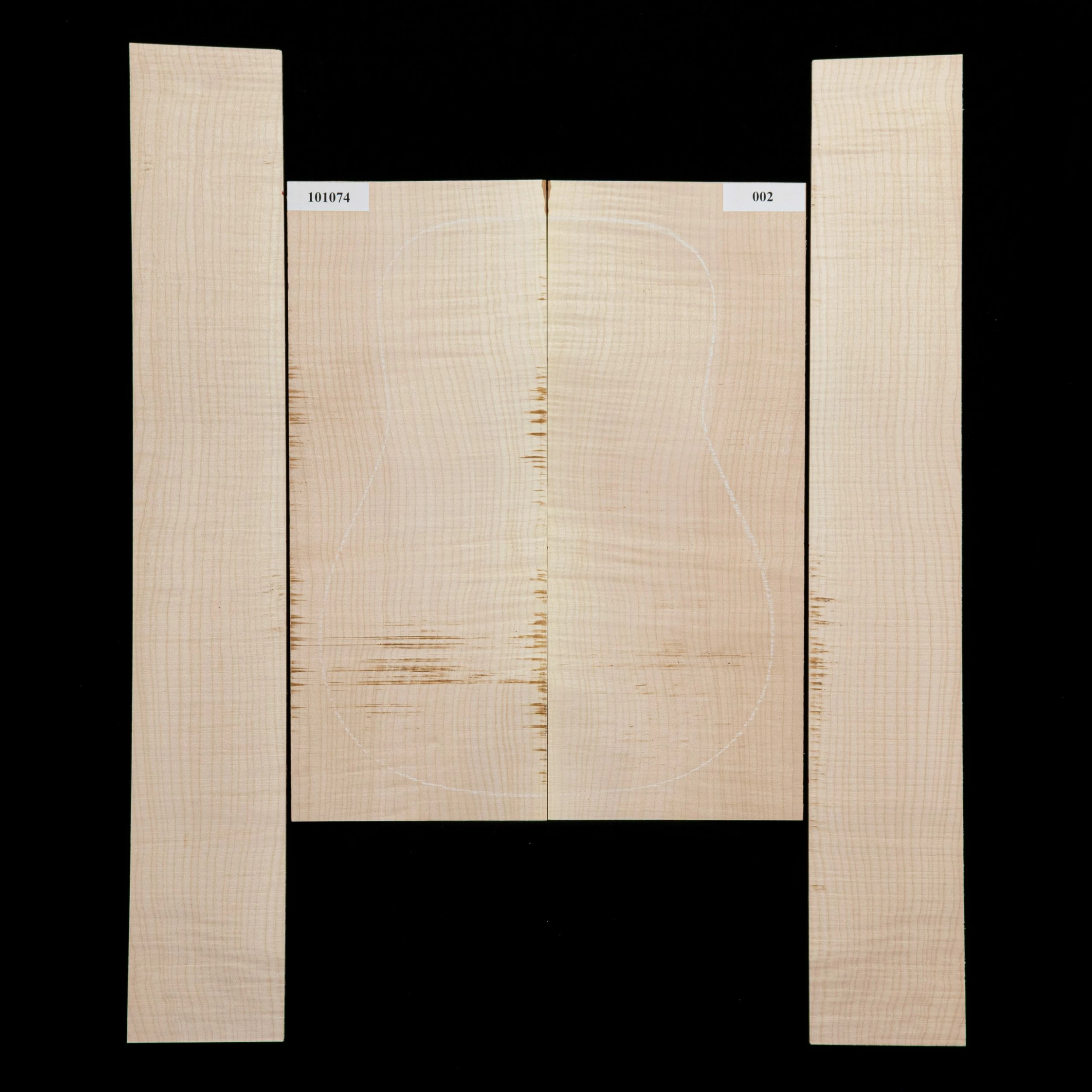 Each bookmatched back and side sets are ready for you to start your build. When joined, they are large enough for a dreadnought. Sides are unprofiled (rectangular) and unbent. Kiln-dried.