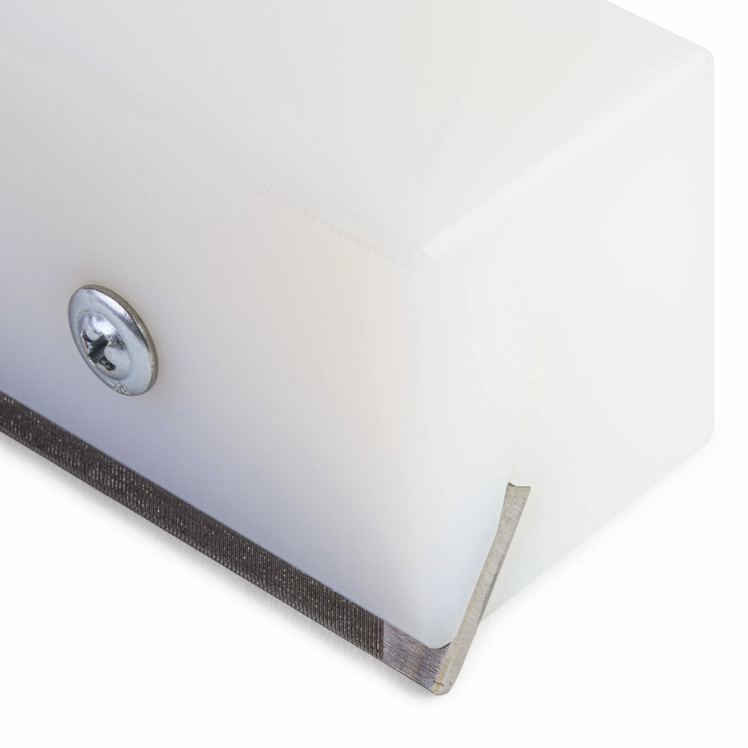 This 1-1/2″ x 1-3/4″ block (two lengths are available) holds a removable fine-tooth flat file at the proper 35° angle to bevel all the fret ends along the edge of the fingerboard. The block is made of low-friction material for smooth, easy filing. The 3-3/4″ model is for short fingerboards (mandolins, for example), and for spot-filing partial refrets. It’s also useful for working on used instruments with necks that aren’t straight.