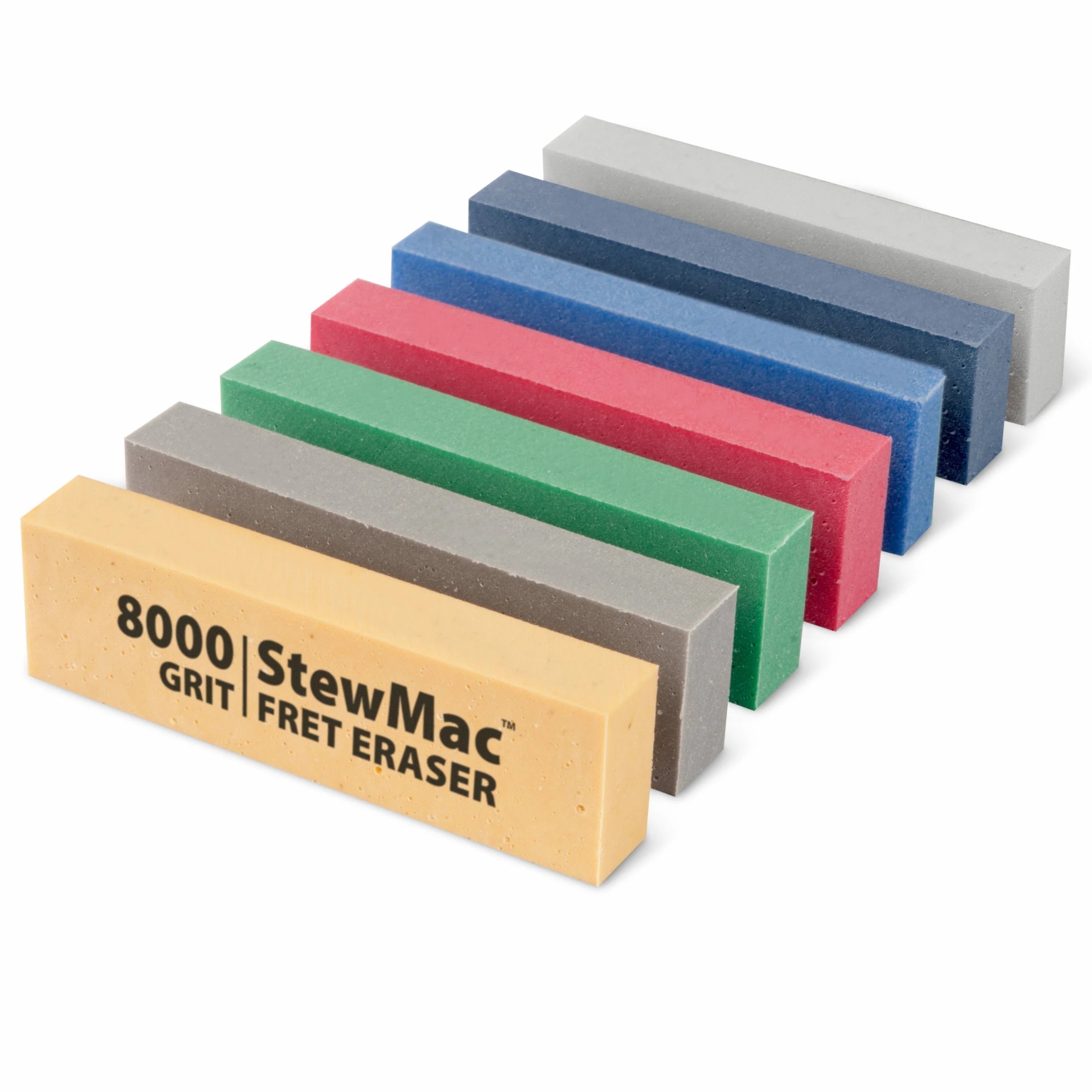 An easy way to make your frets shine! Fret Erasers™ are flexible self-padded rubber blocks embedded with abrasive grits.