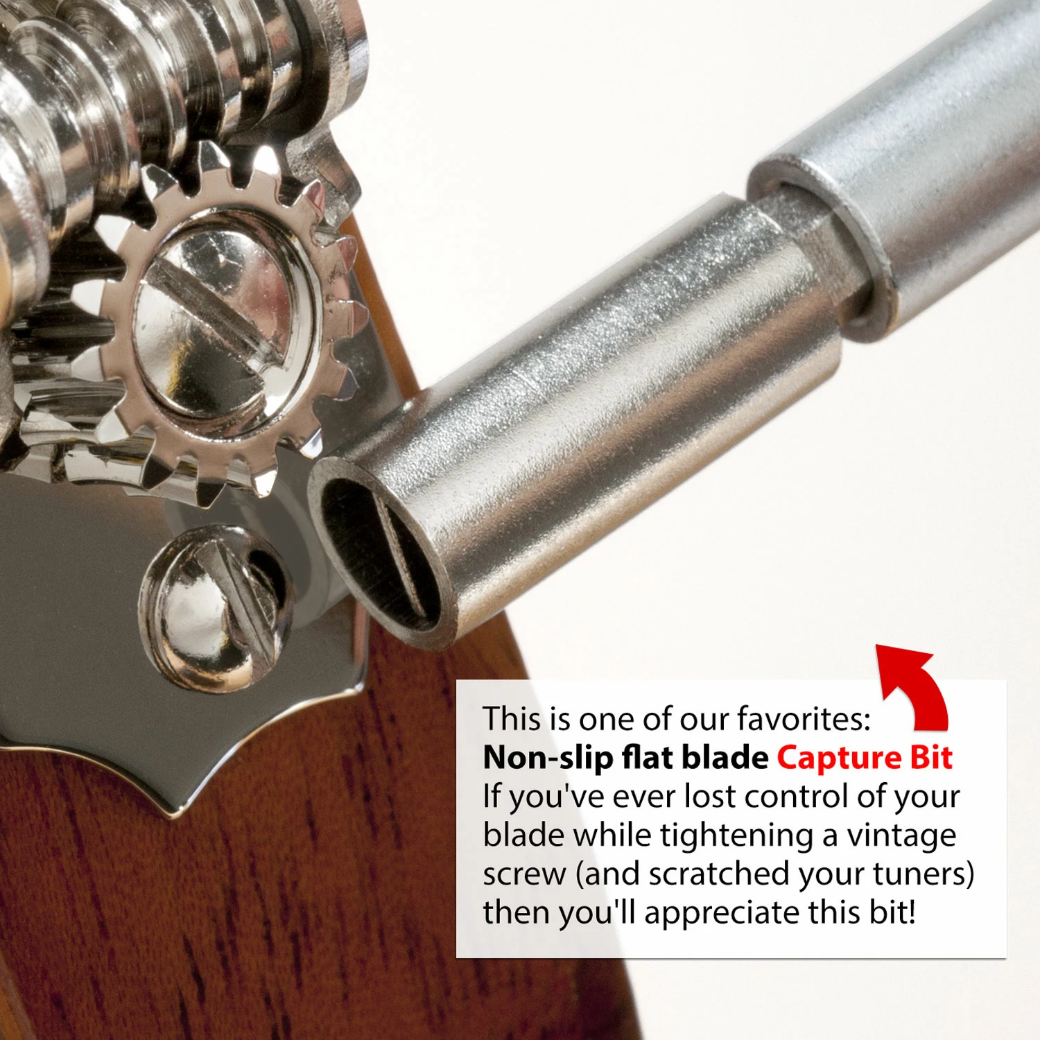 Capture bit: 5.0mm non-slip flat-blade bit helps protect small screws and finished surfaces. A StewMac exclusive!
