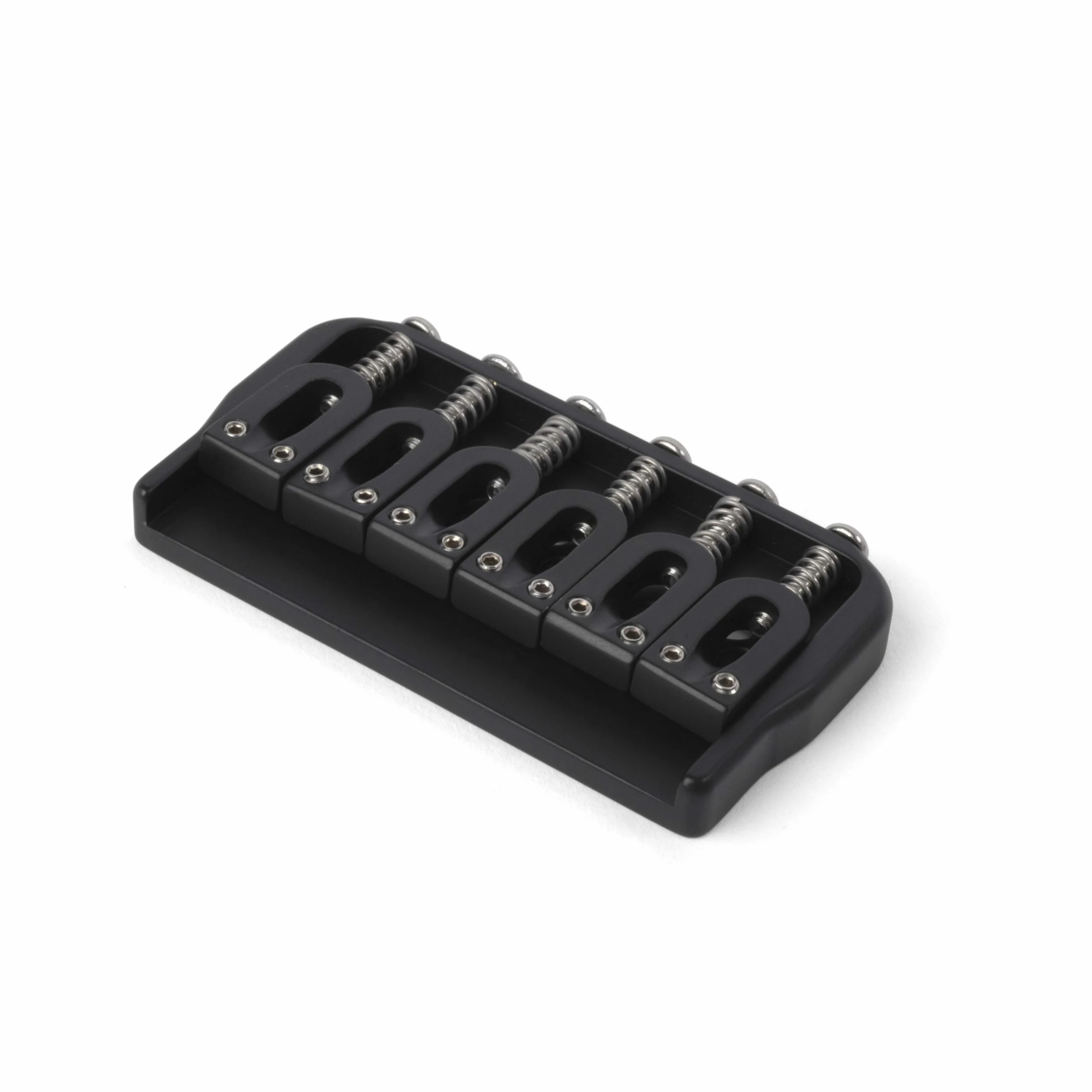 Machined from solid brass, polished and plated, this is among the most finely crafted bridges available for non-tremolo solidbody guitars with through-body string mounting. The forged steel adjustable saddles have 2-1/16″ string spread. Screws and allen adjustment wrench are included.