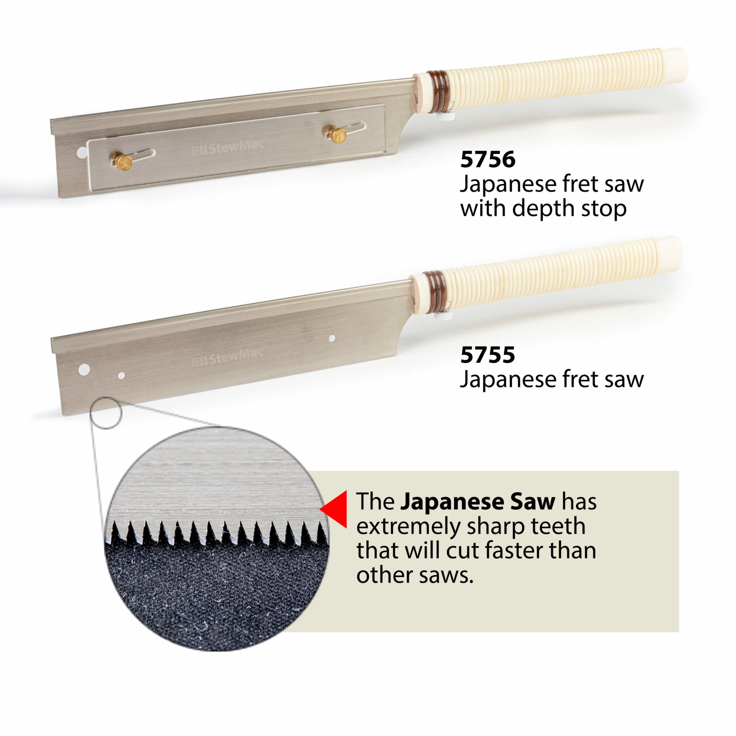 The craftsmanship and efficiency of traditional handmade Japanese woodworking saws are legendary. We are pleased to offer a unique example made specifically for cutting fret slots, complete with easy depth-of-cut adjustment. This is our smoothest, most efficient handsaw for fret work—it cuts FAST!