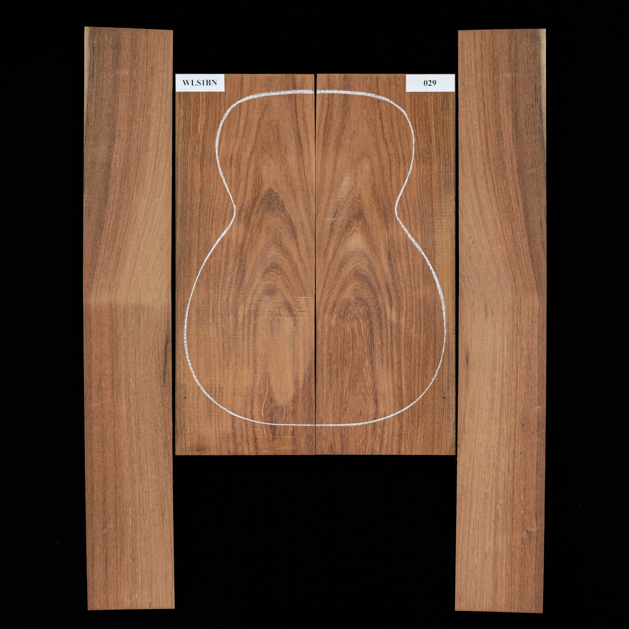 Each bookmatched back and side sets are ready for you to start your build. When joined, they are large enough for an OM-sized or smaller guitar. Sides are unprofiled (rectangular) and unbent. Kiln-dried.