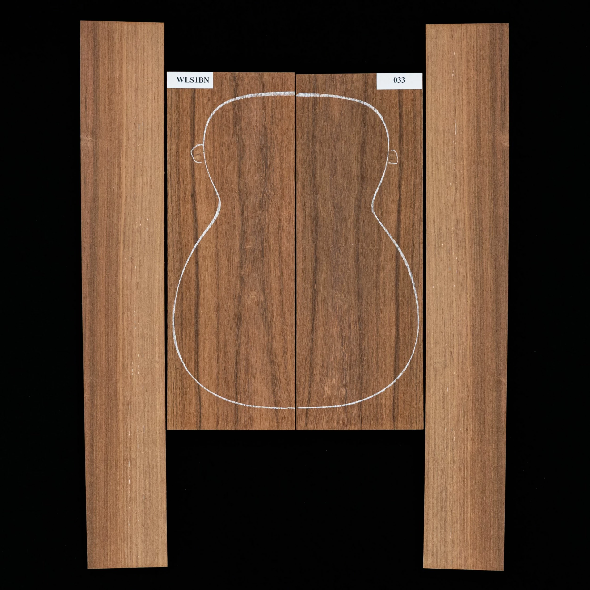 Each bookmatched back and side sets are ready for you to start your build. When joined, they are large enough for an OM-sized or smaller guitar. Sides are unprofiled (rectangular) and unbent. Kiln-dried.