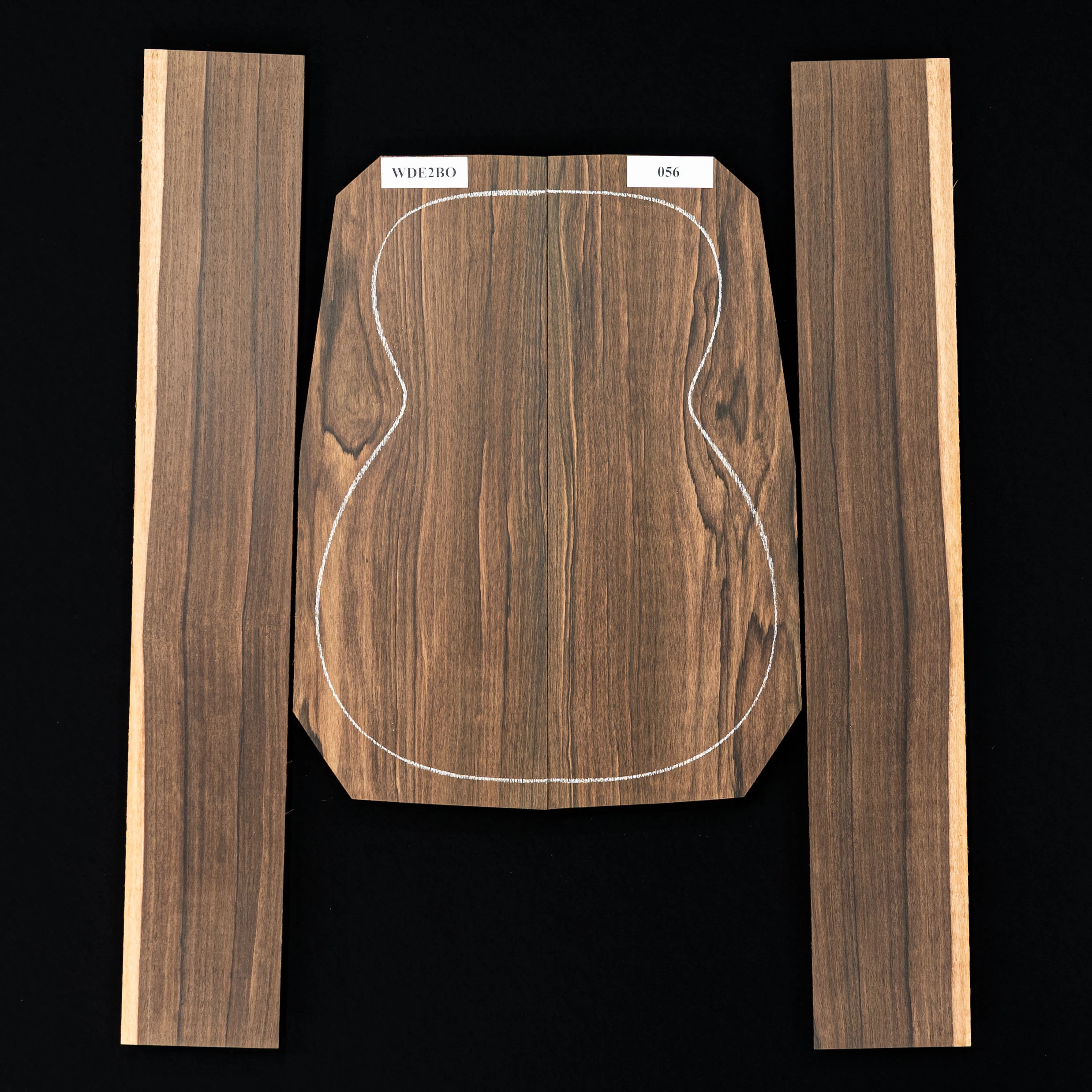 Malaysian Blackwood is a member of the ebony family, but unlike other ebonies, it has extremely beautiful color variations that range from blacks, browns, greys and greens with striking sandy colored sap wood. Visually each set is unique and complex variegation is common in these sets.