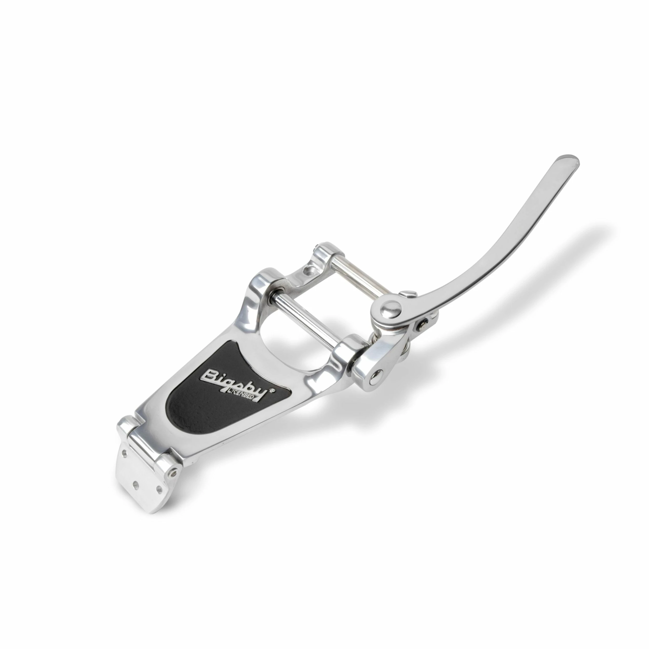 Lower price and smooth action! Licensed by Bigsby, here’s a money-saving imported die-cast aluminum vibrato for thin archtops, or solidbodies such as the Les Paul.®