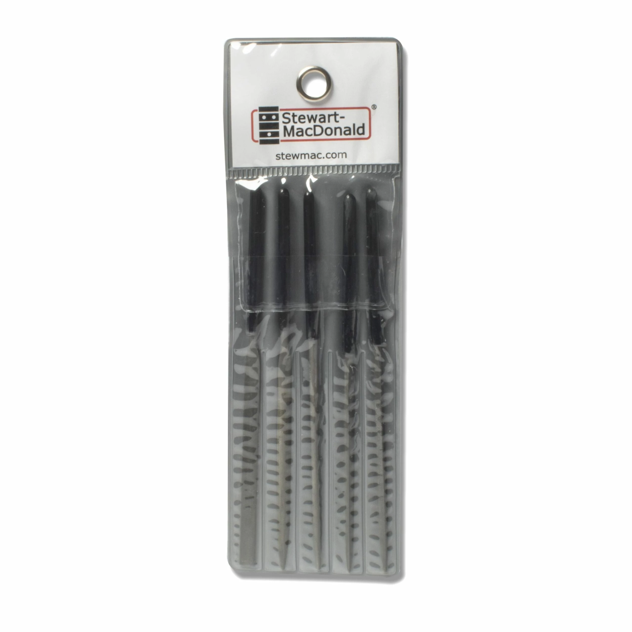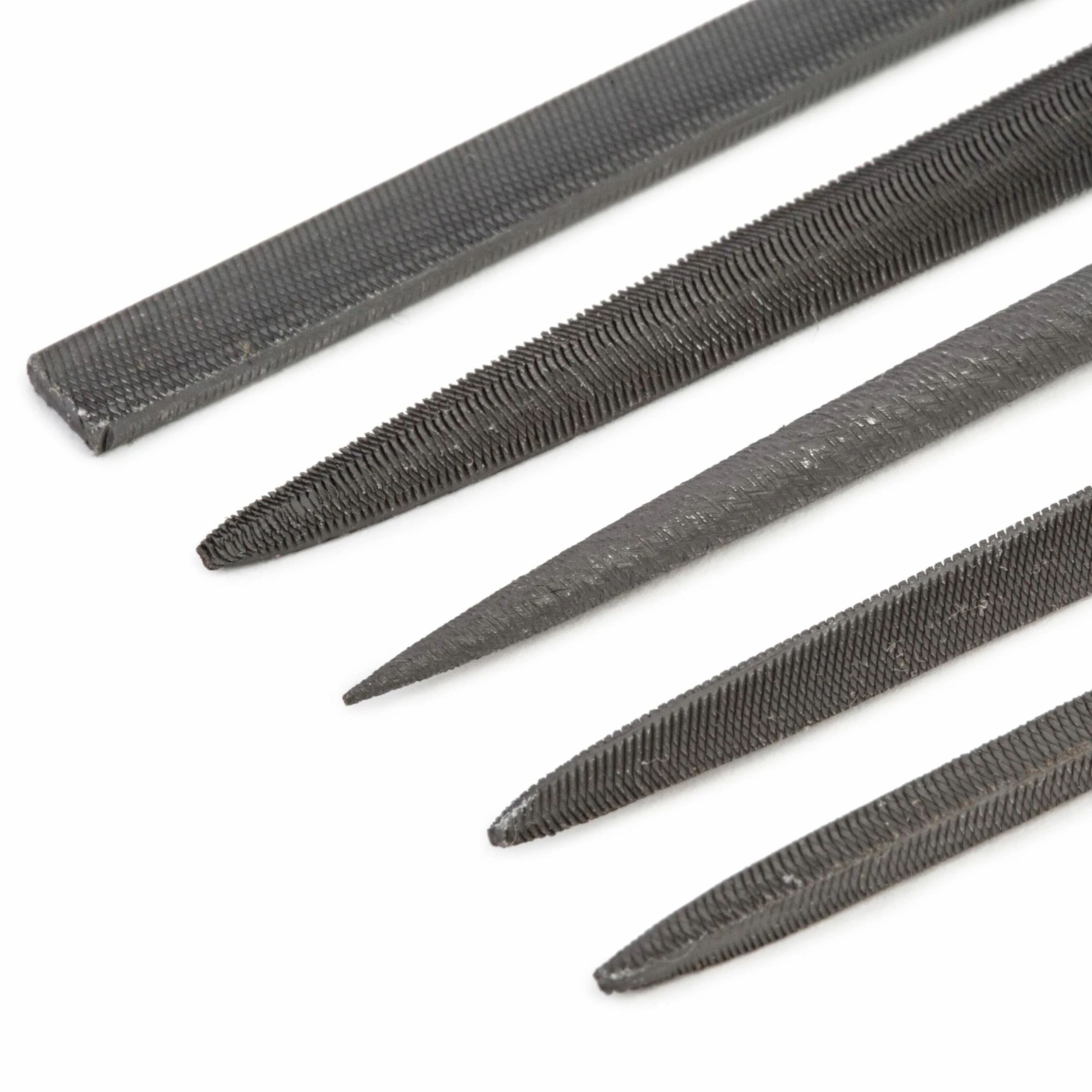 Includes round, flat, square, half-round and triangle files, in 5-1/2″ length with 2-1/2″ cutting surfaces.
