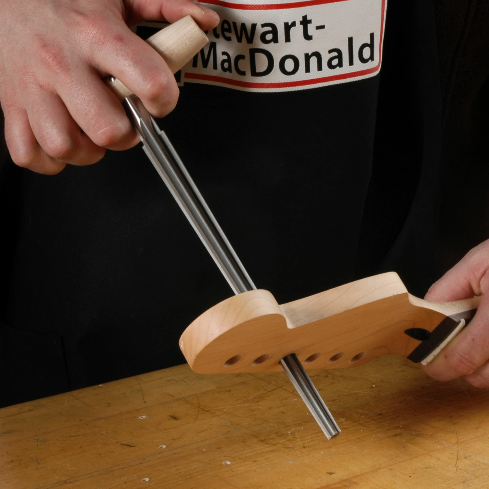 These professional luthier’s reamers aren’t like hardware store versions. One side of our Peghole Reamers is round and smooth. This keeps the reamer centered so the hole stays truly round—essential for tuning pegs!