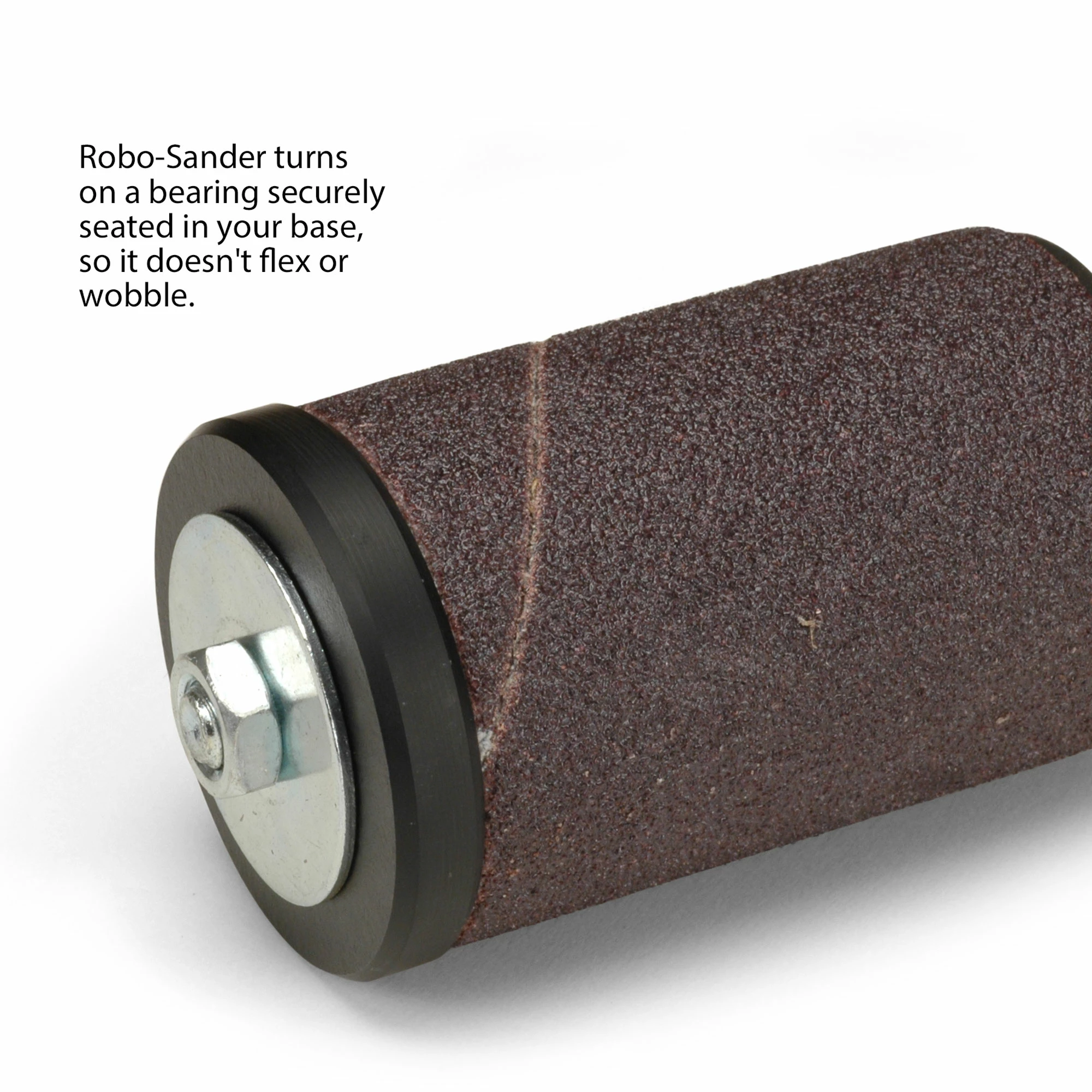 Available in three diameters, the Robo-Sander runs on a bronze bearing for smoothness. It works with your drill press to sand wood and other materials up to 2-3/4″ tall. Each Robo-Sander is supplied with a 50-grit abrasive sleeve.