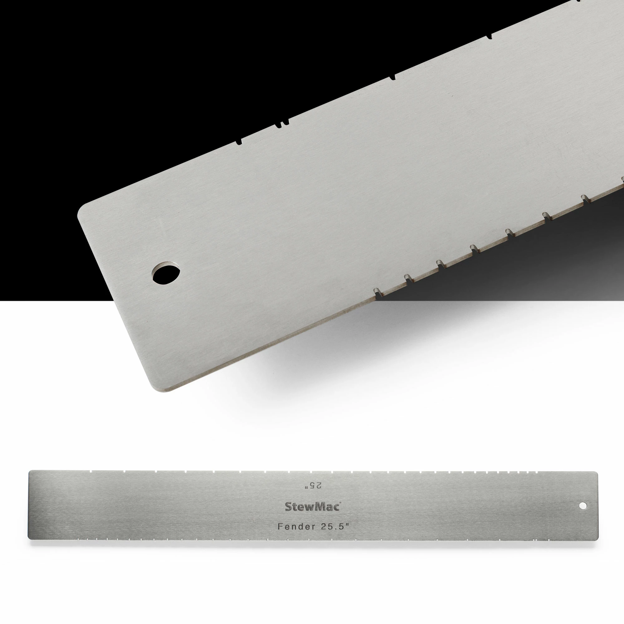 #4916 For Fender 25.5″ includes fretboard cut-off and nut positions. Also for 25″ scales like Paul Reed Smith®, Dobro®, Danelectro®, and Benedetto.