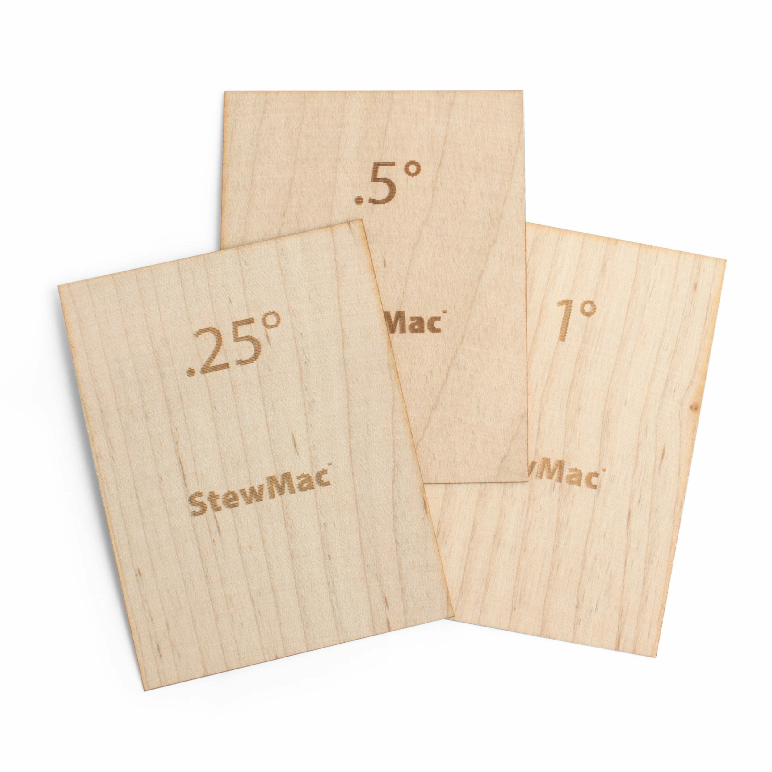 - 0.5-degree shim is the one you’ll reach for most often. It works great on Fender and many other solidbodies.